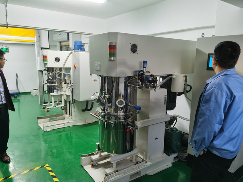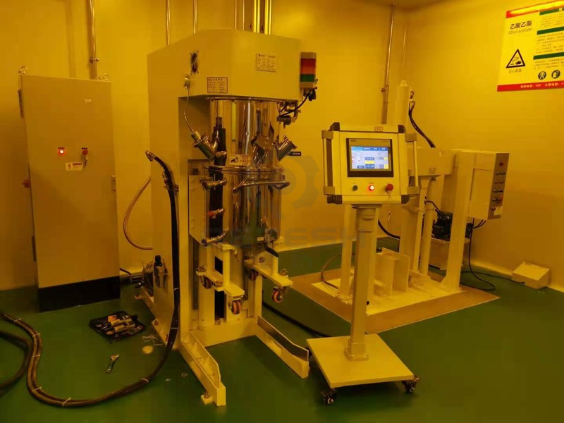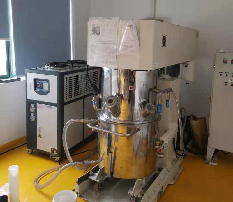 雙行星攪拌機雙行星混合機的攪拌槳葉,在公轉的同時也自轉,使罐體內(nèi)物料上下及四周循環(huán)運動,從而可在很短時間內(nèi)達到混合(混煉)效果。罐體內(nèi)壁為大型立車精加工,再經(jīng)大型拋光機自動 -